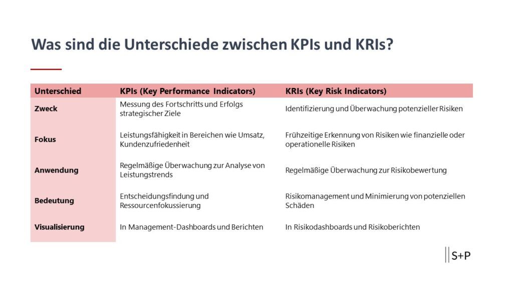 KPIs und KRIs: Unterschiede, Bedeutung und Anwendung S+P Seminar Finance & Controlling S+P Seminar Risikocontrolling In der Geschäftswelt sind Key Performance Indicators (KPIs) und Key Risk Indicators (KRIs) wichtige Instrumente zur Messung von Leistung und Risiko. Sie ermöglichen es Unternehmen, ihre Fortschritte und Erfolge zu verfolgen...